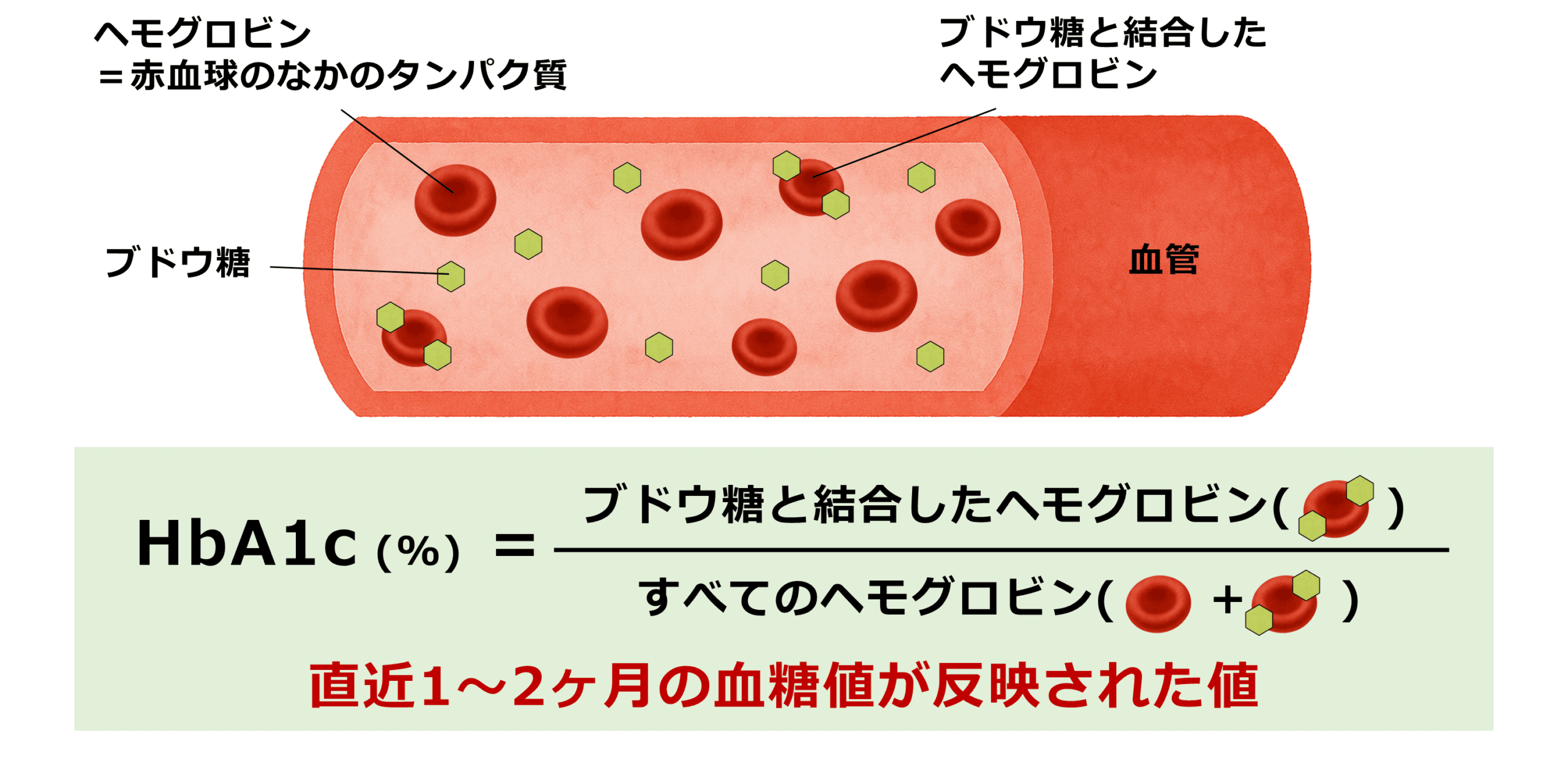 過去1〜2か月程度の血糖値の平均を反映する指標です。